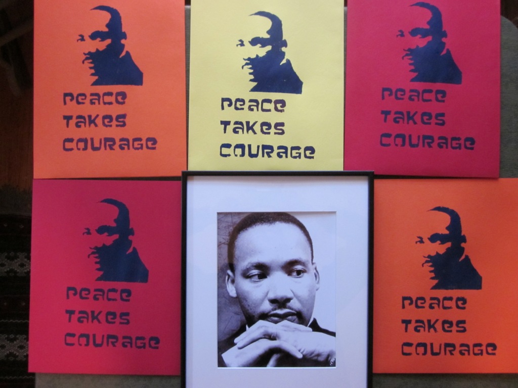 Thanks to McCallum students and staff for stopping by the table and checking out our wares! Here is the current Peace Wheel lineup, along with some photos from today, including some of the awesome student stencil art and a copy of a new flier on Active Nonviolence.